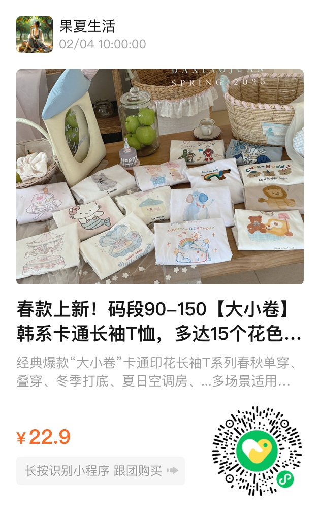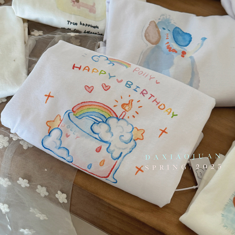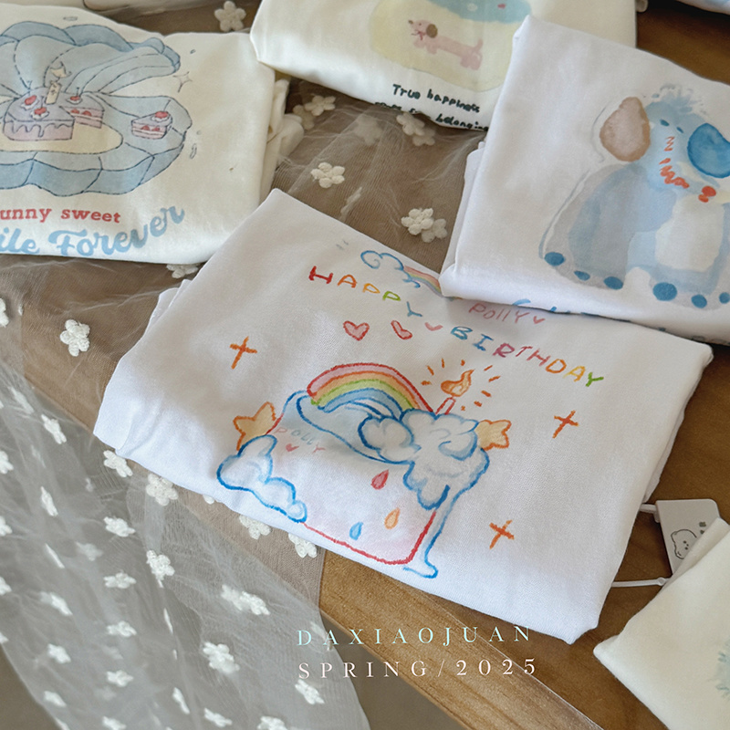 在那个春风和煦的早晨,阿狸将一件带有可爱卡通印花的长袖T恤轻轻套在了小宝的身上。不同花色的可爱图案如三月的桃花般争相绽放,仿佛在述说它们各自的小故事。这种设计灵感好似源自某部让人心生愉悦的童话。孩子们穿上这系列的长袖T恤,便如同踏入了一个奇妙的世界,在多彩的校园里也总能感受到来自外界的羡慕目光。