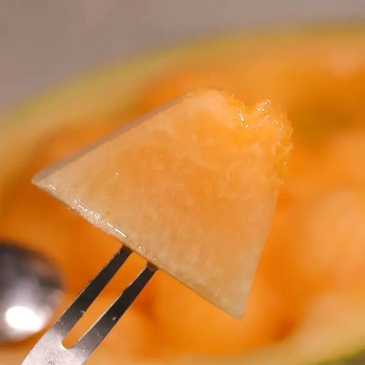 咬下一口,这块小巧的哈密瓜果真有“倒弹的脆感”,“咔嚓”的清脆声混合着饱满甜蜜,让人觉得每一口都在与阳光对话。它的甜,好似古人煮雪后的第一勺春水,没有负担,又让人心悸,伴随着舌尖的芳香层层递进。越往中心,甜度愈加浓郁,那馥郁的果香裹挟着细腻的果肉,如同一艘蜜糖小舟径直驶向心灵最柔软的港湾。