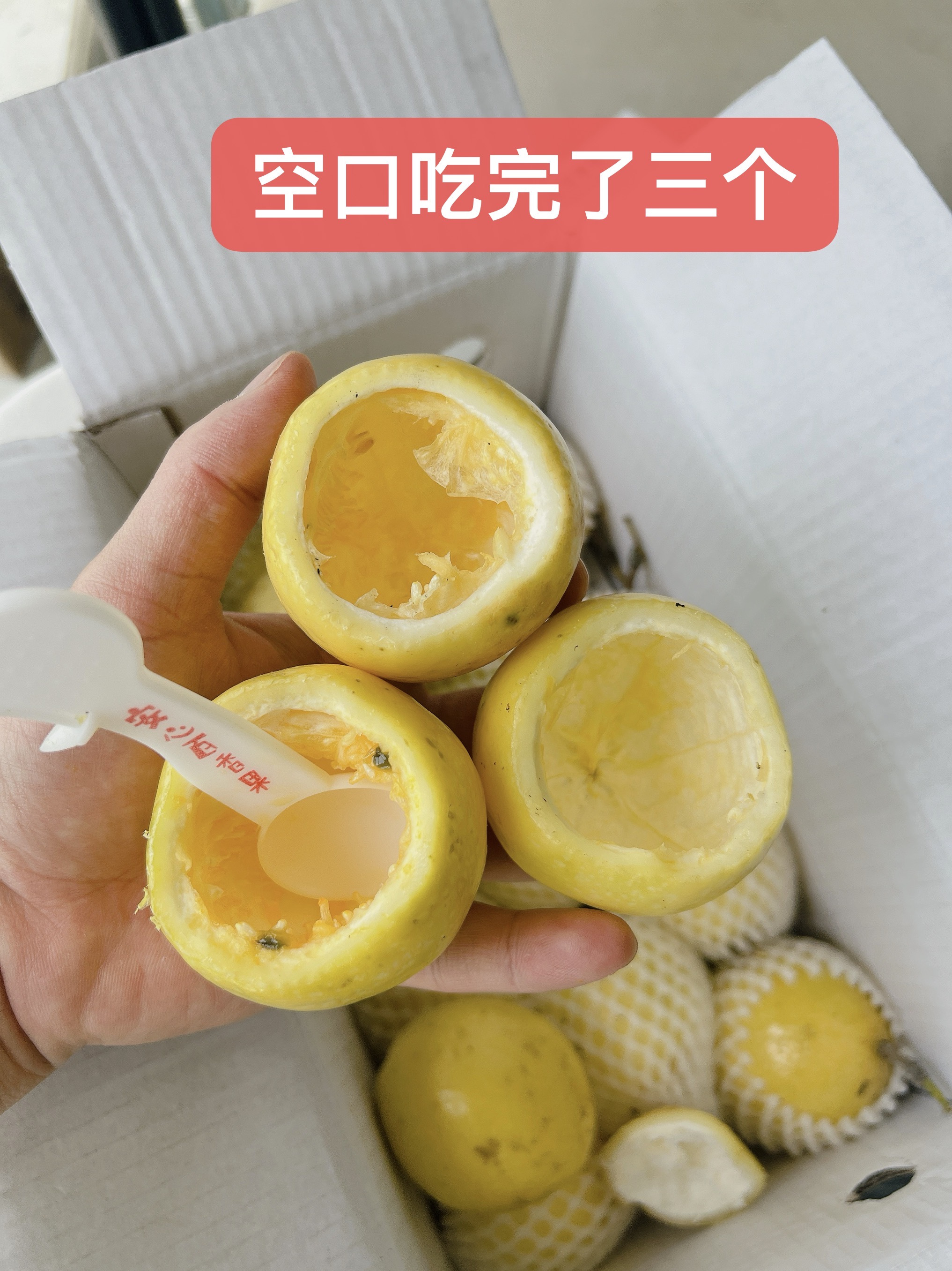 果子的故事里,讲究的是时间的作画。当百香果果脐泛黄,那是它悄悄对阳光低声告别的时刻,宣告自己已准备好进入你的生活。为了这黄金的香甜,每颗果子都坚持在树上等到8到9成熟,糖分在果肉间慢慢充盈,柔化了酸涩也藏住了炙热。有人说,切开一颗黄金百香果,十米之外还能闻到它酸酸甜甜的清香;有人则调侃,在办公室里打开,香味会成为唯一的职场八卦。它的甜度可是紫色百香果的两倍,尝上一口,果肉滑溜溜进了嘴,汁水染满舌尖,那一刻,是初恋般的美好。