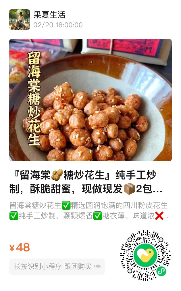 如果这个秋天,你想用一份简单的味道唤起心底的幸福感,请尝试留海棠的糖炒花生。它的酥脆甜蜜,是一如既往的标准;对它的制作认真与食材挑剔,则体现在每一口的惊喜中。现在购买,仅需48元便能拥有两包这样满溢好味的糖炒花生,像捧着朴实又真诚的手工礼物,与你共享简单美好的瞬间。