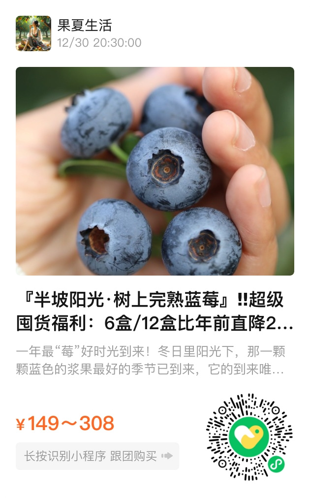 现今,我们为珍贵客户提供一项特别活动:在活动期间,6盒或12盒蓝莓均享有每盒直降20元的优惠。这是我们对您支持的感谢,也希望通过这次机会,让更多的人能够体验到这样难得的美味。在这个“莓”好的季节,我们期待着为您的生活增添一份健康与幸福。