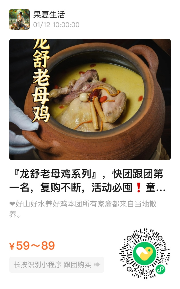 这次的活动,也让大家可以以更加实惠的价格,带回家这份大自然的馈赠。龙舒老母鸡,来自大别山的散养鸡,严选500天的生长周期,严格无激素、无抗生素,确保每一只鸡都达到最佳的滋补效果。每只鸡都通过严格的流程检测,确保安全、健康。无论你是第一次尝试,还是已经成为常客,它都能为你带来温暖与满足的味道。