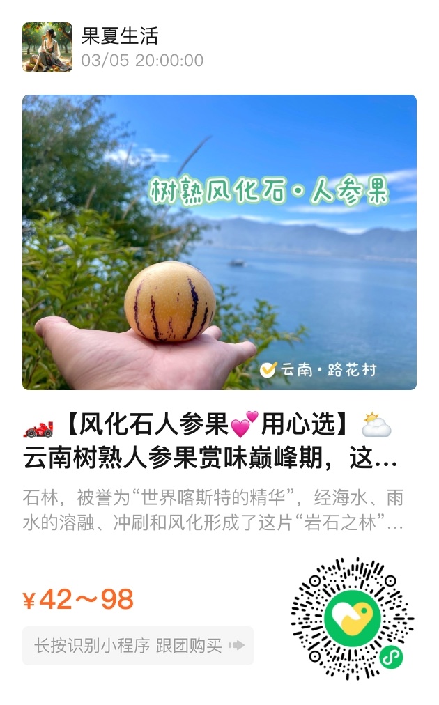 如同一位热情的故事讲述者,石林的这颗人参果,带着岁月的沉淀,讲述着土地和阳光的故事。它的独特口感与高营养价值让它成为现代人健康生活的必备之选,富含多种维生素与矿物质,特别适合孕妇、减肥人士及三高人群。每一口都是对身体的滋养,清甜的果肉带来的是对健康的呵护。人参果,这份来自大自然的馈赠,不仅仅是一种美味,更是一种生活的享受。