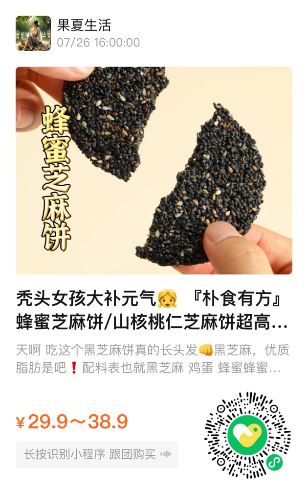 这款芝麻饼含有丰富的黑芝麻,黑芝麻本身不仅有助于养发,还富含天然钙质,有助于骨骼健康。每天吃两片,就能帮助补充钙质,特别适合老年人、孕妇、孩子以及需要长期脑力劳动的人群。而且,朴食有方坚持选用自然的蜂蜜,甜而不腻,恰到好处,完全没有多余的糖分,吃得更安心。
