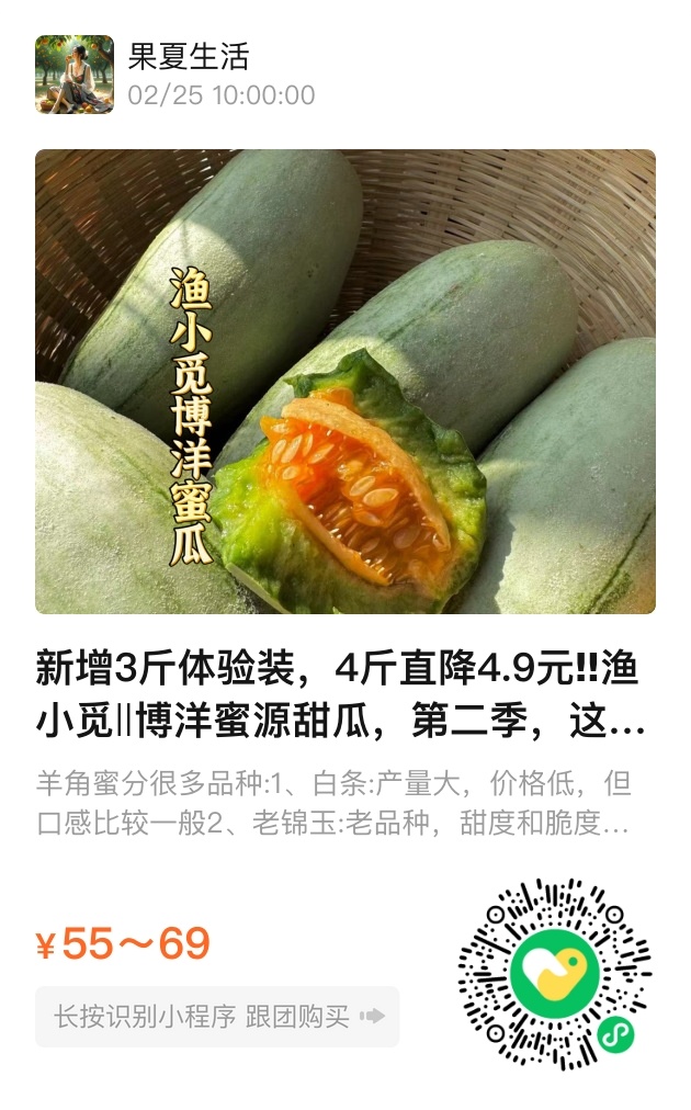 在这个季节,渔小觅‖博洋蜜源甜瓜无疑是您餐桌上的最佳选择。感谢您的支持,我们将继续为您提供新鲜、美味、健康的产品,带给您更多自然的馈赠。