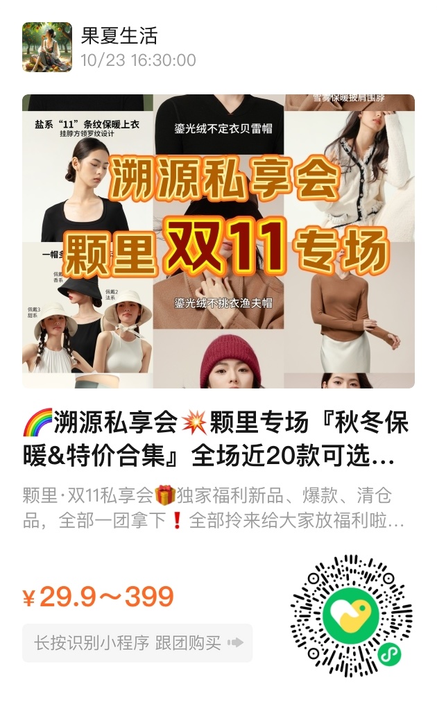 现在,颗里品牌的秋冬系列正举行特价活动,各种款式的保暖背心、家居服、配饰等,让你在温暖中保持时尚感。无论是经典的小香风家居服,还是深受喜爱的保暖背心,每一款都能让你感受到设计与品质的双重呵护。而此次的私享会,颗里带来了独家的福利,活动期间,近20款精选商品超值优惠,部分清仓款更是力度空前,错过这一波,恐怕要等明年再见。冬季里,颗里不只给你温暖,更为你带来温度与风度的完美平衡。
