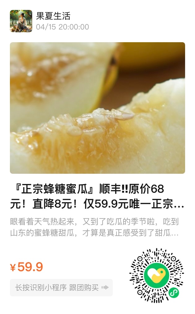 现在购买正宗蜂糖蜜瓜,限时直降8元,原价68元,现仅需59.9元!每颗净重3-3.5斤,顺丰快递直送到家。快来享受一口夏日的清甜,品味自然的馈赠。