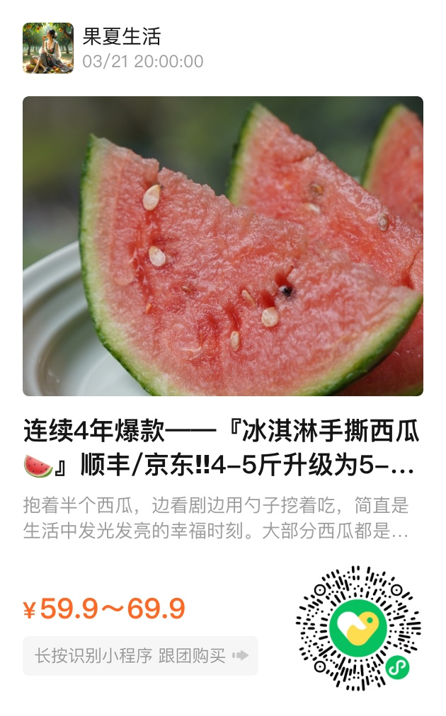 西瓜的皮薄肉嫩,甜美与清爽并存,吃上一口,果肉瞬间融化在口中,甘甜清新的汁水充盈全身。尤其是冰镇之后,口感更加清爽,宛如在热烈的夏天里品尝到一抹春日的清风。与家人、朋友一起分享这份清甜,既不会担心瓜过大吃不完,也不会浪费每一口美味的时光。这不仅仅是一块水果,它承载了季节的转换,也让每一口的清新都变得格外珍贵。