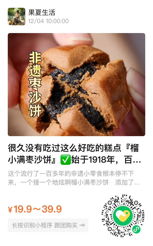 🎉活动时间内,榴小满枣沙饼开团特惠:一袋仅需19.9元,29.9元拿两袋,真材实料,错过可惜。