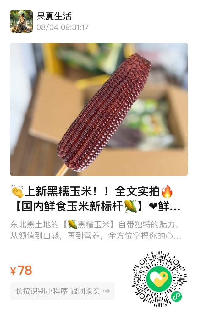 在这个讲究效率的年代,【黑糯玉米】却像是逆流而上的小舟,用最笨拙的方法,守着最自然的美好。从种子到餐桌,不借助一滴农药,不依赖一丝催熟。靠的是一米深的腐殖土,靠的是昼夜温差炼成的甘甜。靠的更是那些在山风中种玉米、在星光下盯田地的人们。他们相信,脚下有泥,心里才有光。