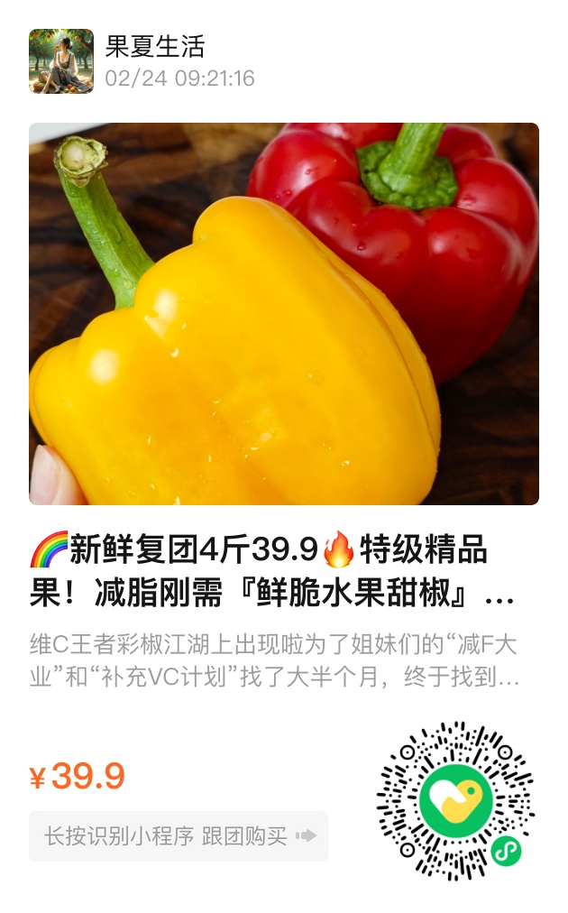 当前正值活动期间,您可以以超值价格享受这款特级水果彩椒——4斤仅需39.9元!无论是作为日常零食,还是搭配您最爱的美味菜肴,它都能为您的餐桌增添色彩和健康。错过这次机会,您可能要再等很久哦。抓紧时间,快来体验这一口“鲜脆甜”的健康之选吧!