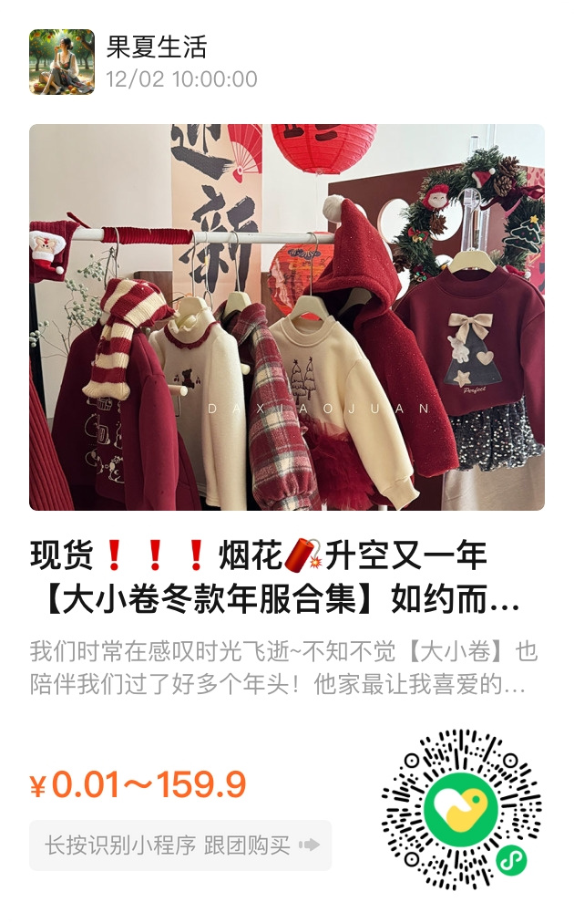 现在,年服合集中不仅有多达六十款设计可供选择,还有特别适合男宝宝的款式。活动期间,购买即可享受折扣和赠品。无论是拜年、逛街还是日常穿搭,大小卷的年服都能为您和宝宝带来无与伦比的幸福感。每一件衣服都充满温暖与爱,为宝宝们送上最美的祝福。