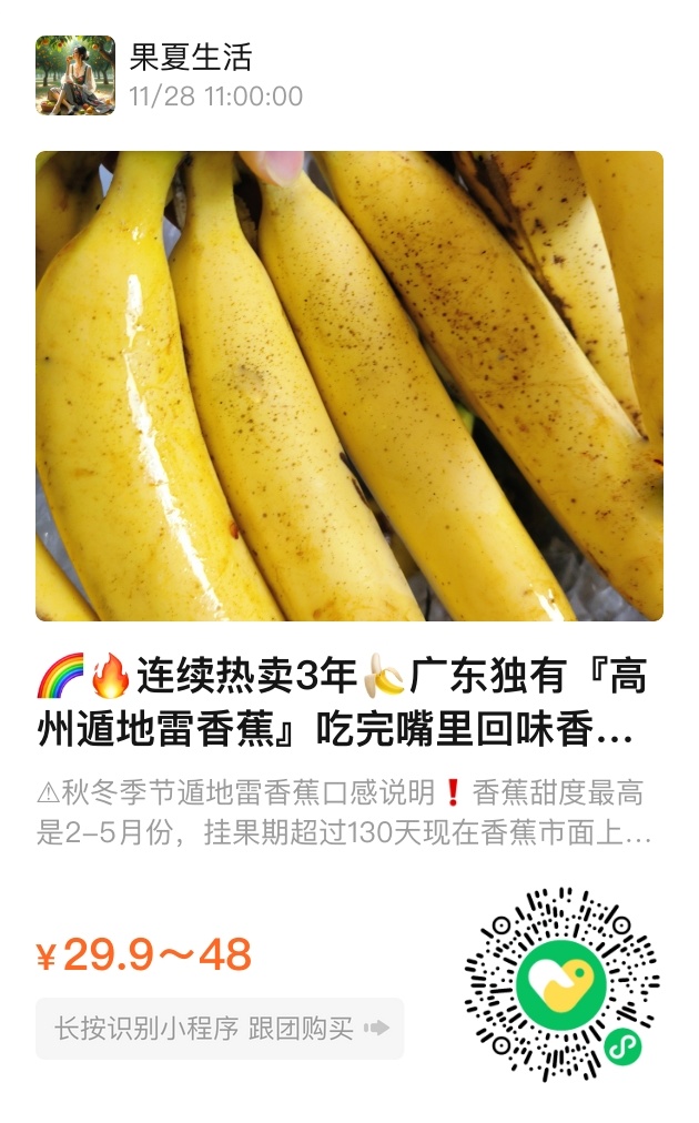 在这个秋冬季节,购买一篮高州遁地雷香蕉,不仅是选择一种更健康的食物,它也是与大自然深度连接的一次体验。每一口的香甜,都是对土地的敬意,也是对生活品质的追求。现在,参与我们的活动,您不仅能品尝到这种珍稀的美味,还能享受我们的特惠价格。数量有限,抓住机会,带回家这一份来自广东高州的天然馈赠吧!