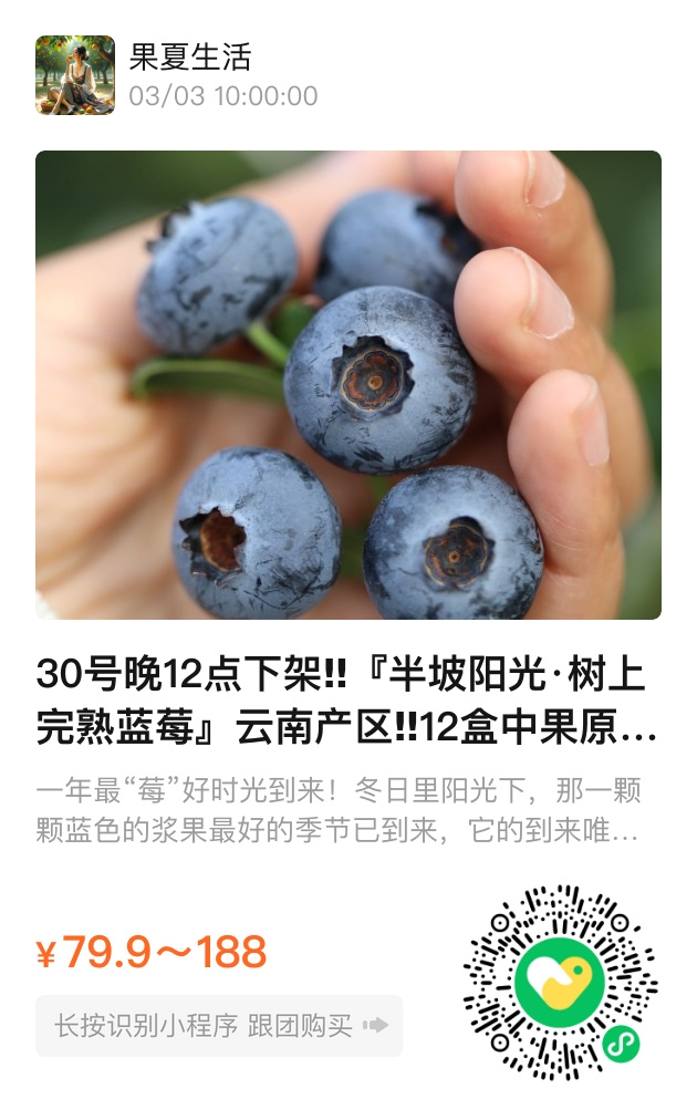 总结:半坡阳光·树上完熟蓝莓,以自然之力养成,以匠人之心采摘,不抢早,不虚夸,只为你在冬天尝到一颗真正甜脆、花香四溢的蓝莓。