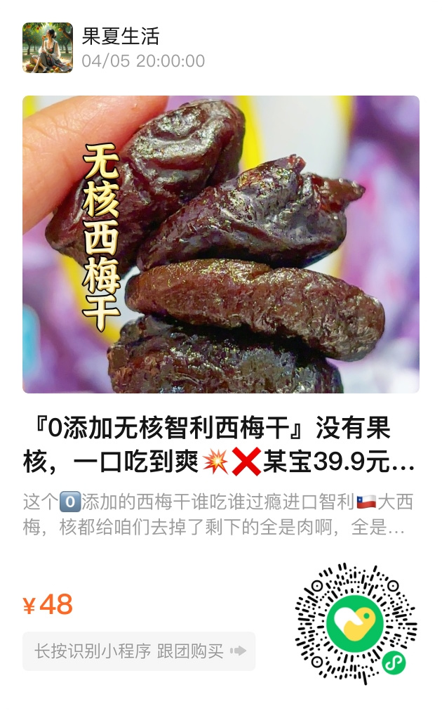 更实在的是,价格也很良心。市面上100g要卖39.9元,我们整整500g才48元,一口价,不玩虚的。这不是那种果肉稀少、吃一半吐一半的带核西梅,而是真真正正全是果肉,吃得过瘾,吃得实在。