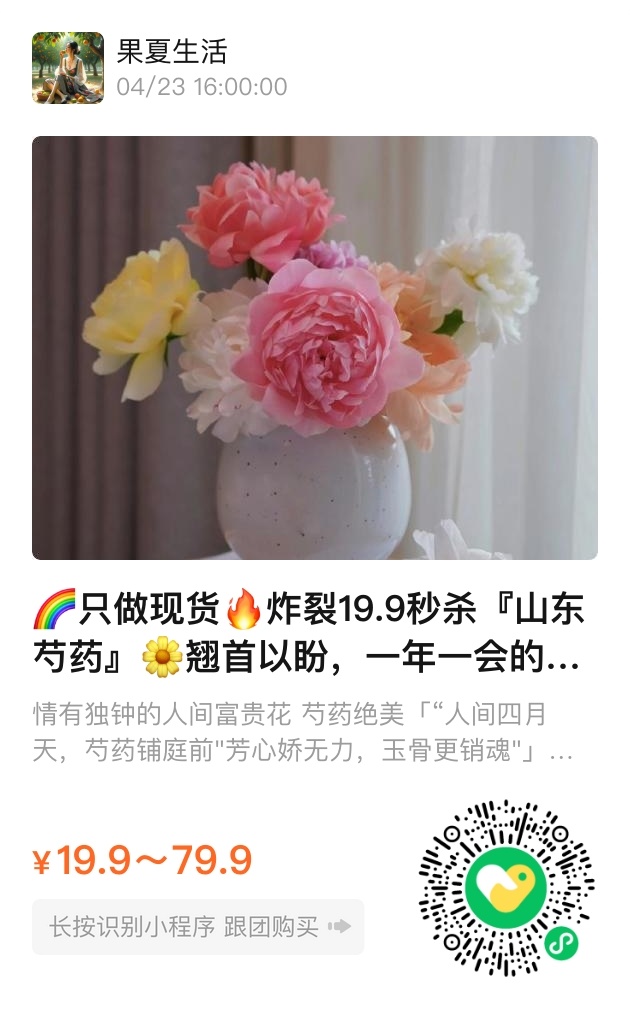🌸本期福利:国产混色芍药5支装,现货秒杀价19.9元,品种随机但皆为佳品,自选亦可,限时不限购,错过等一年。