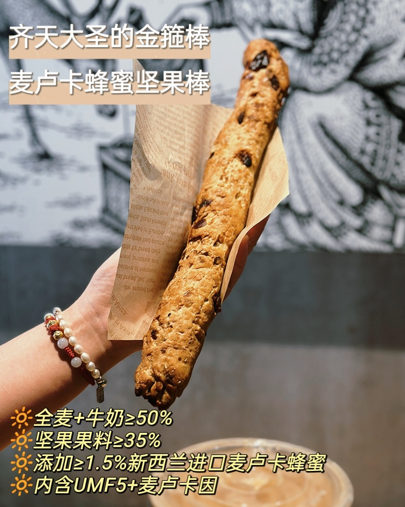 小时候,姥姥家的厨房总飘着麦香。鸡蛋打进奶里,热牛奶烫了面团,揉到起筋才肯罢手。那时候的面点是慢火细炖的日子,是被时间温柔打磨的味道。如今城市快节奏,谁还有空和面发酵十二遍?可「麦卢卡蜂蜜坚果棒」偏要守住那点“慢工出细活”的倔脾气,用全麦粉、鸡蛋、牛奶,一步步柔化,发酵出比俄罗斯大列巴还温柔一半的口感。撕开,香气扑鼻,仿佛又坐回姥姥炕头,手里捧着她刚出锅的软面卷。