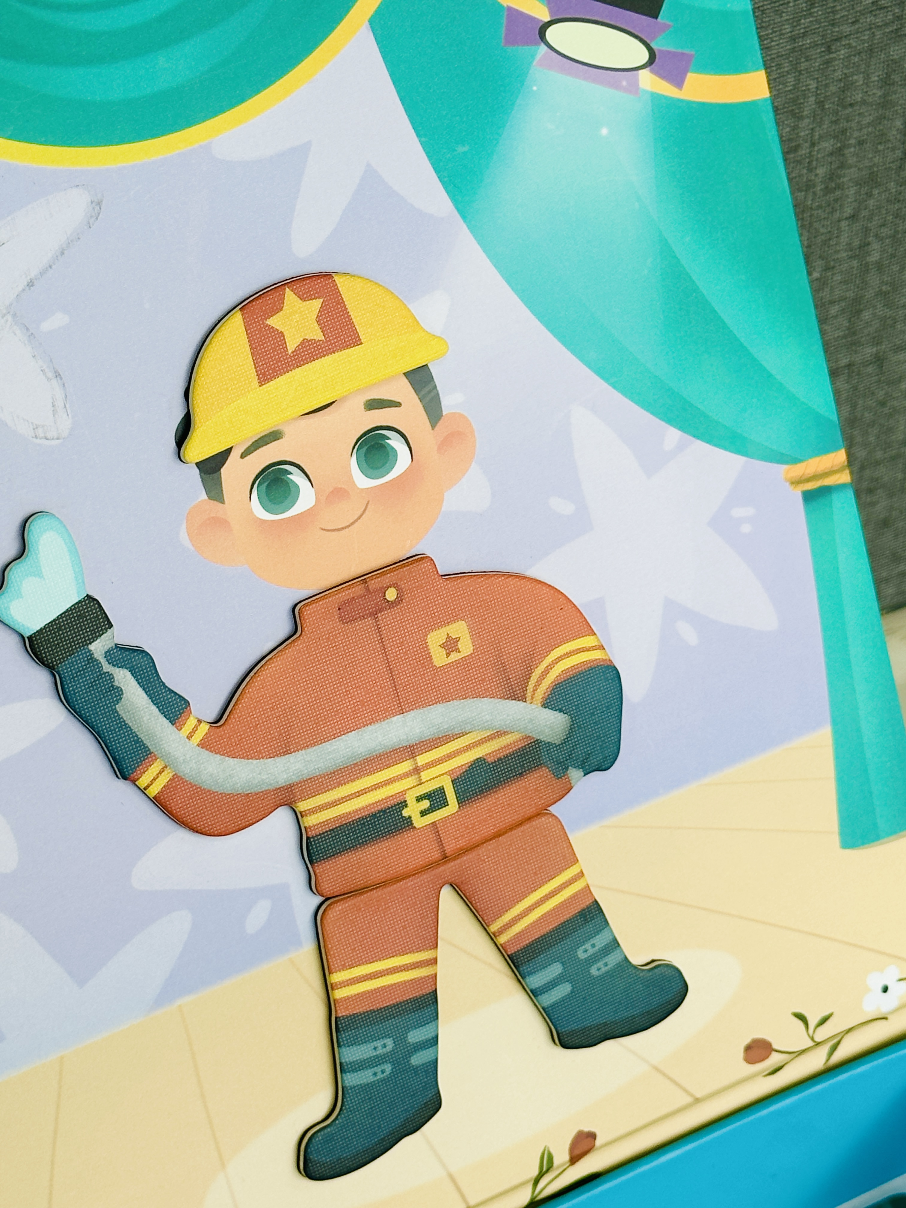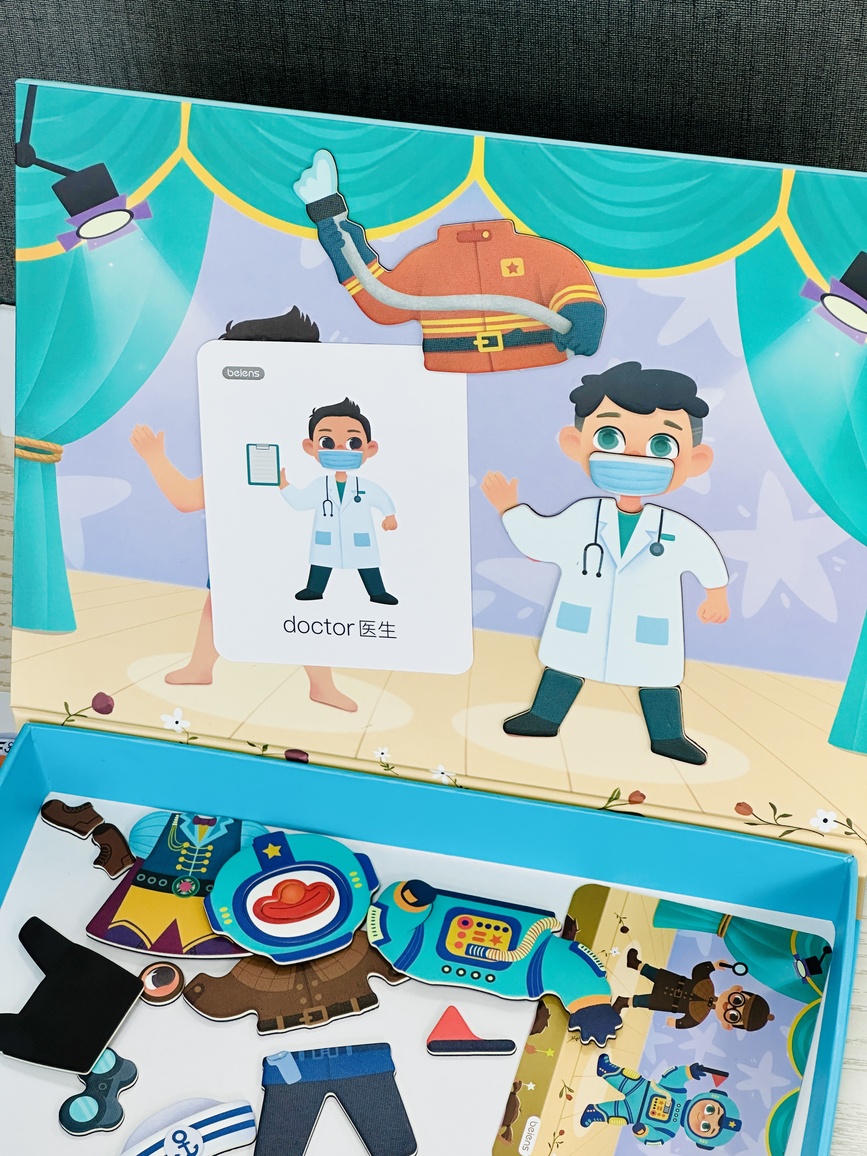 这套贝恩施职业启蒙拼图,不是简单的卡片,它的每一块图形,都像是在讲故事:医生拿起听诊器、消防员提起水枪、科学家戴上护目镜,就像是把孩子心里那个“我以后想做什么”拉出来,变得有形有影。德国海德堡印刷配上400g白卡纸的质感,不是为了说它贵,是因为一张耐撕的纸,也许能撑起一个孩子反复试错、重来、拼合的成长。
