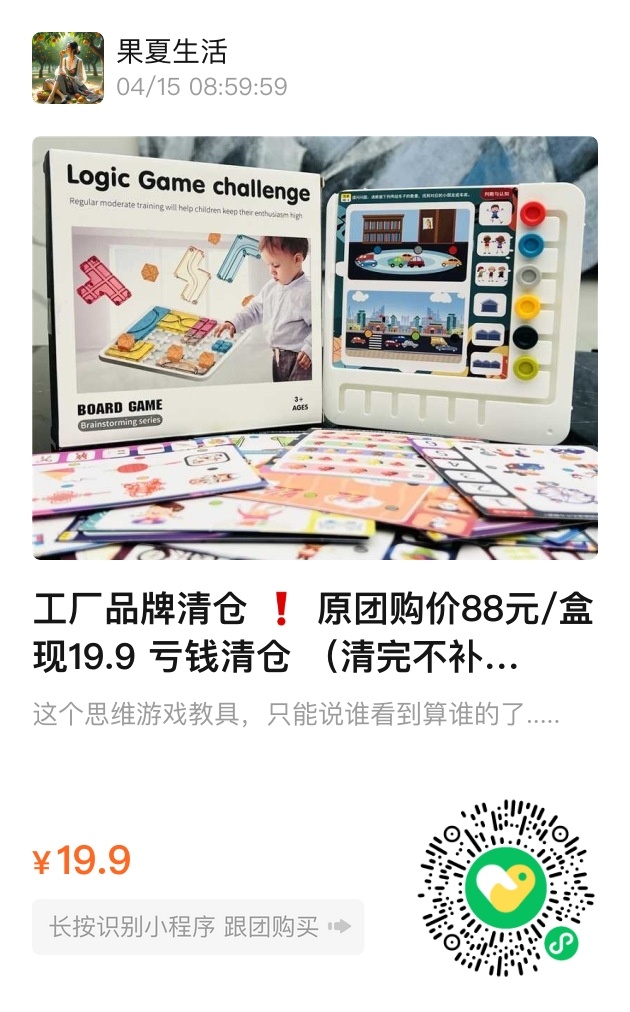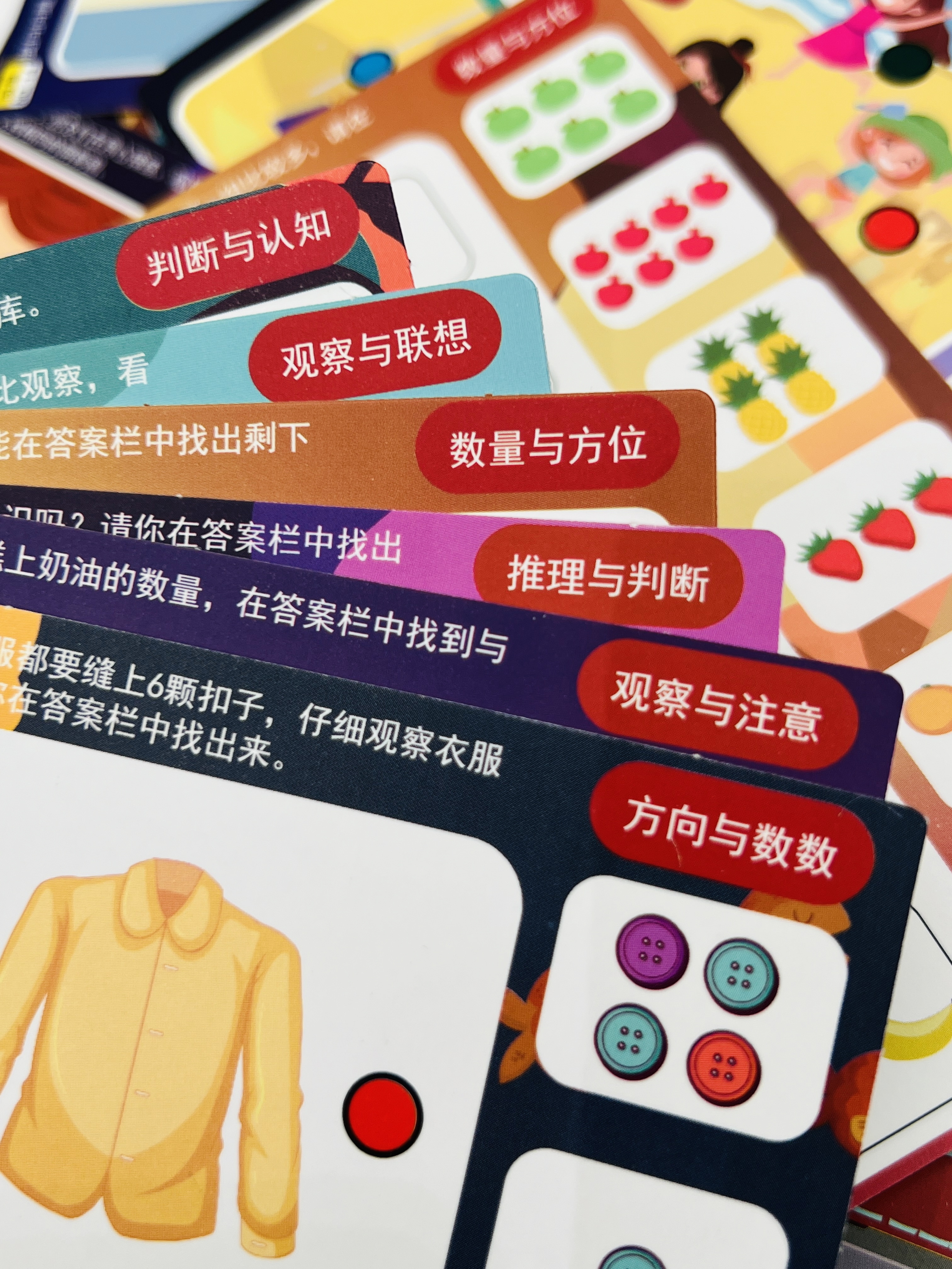 在山西老家,爷爷总爱拿一个破旧棋盘逗我们玩,几个木头片子,摆来摆去,能琢磨一下午。他说:“人呐,小的时候爱动脑筋,以后才不被生活打败。”这回看到妙可蓝多的逻辑思维教具,我忽然想起那个木头棋盘。只是今天,它换了样子——30张双面卡片,60道题,从形状、颜色到规律判断,像是孩子思维的体操房,难易有序,节奏刚刚好。不哄你,不绕弯子,干脆利落地锻炼脑力,像老师,也像老友。