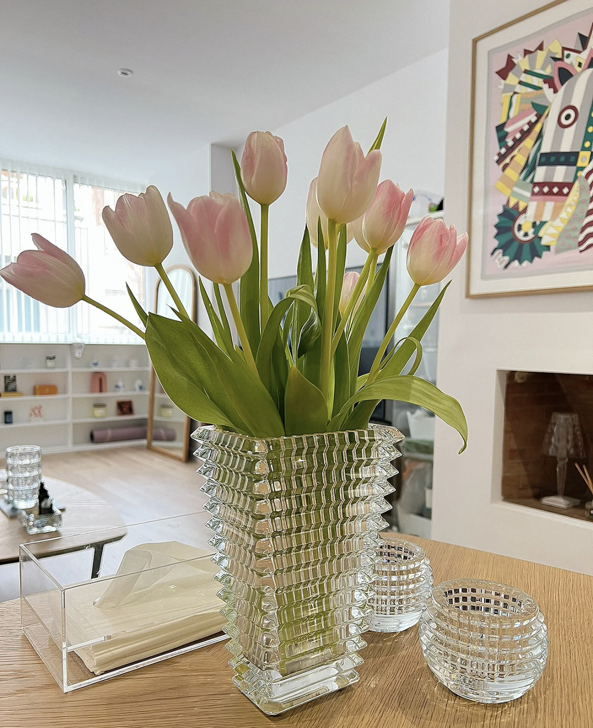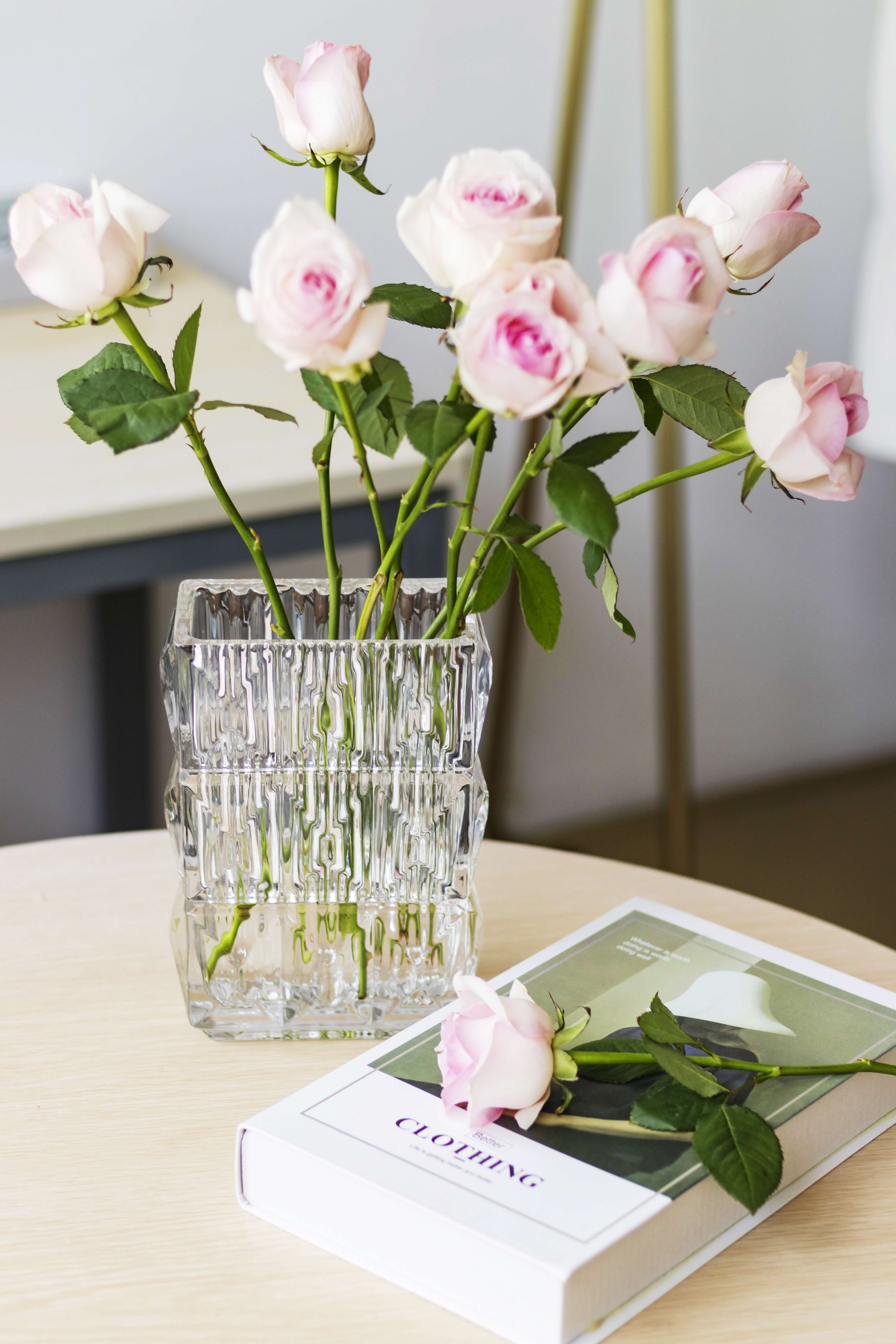 它有点像古人案头的一方砚台,沉稳又讲究;又像小时候奶奶柜子里舍不得用的水晶杯,美得低调,重得真实。花瓶三种款式,像是三种生活的节奏:一种清透简单,像晨间清茶;一种带切割纹理,像城市灯光的反射;还有一种则温润内敛,像傍晚时分的一盏茶香。剪一支康乃馨,插进去,它就不是个器物,而是一个让生活慢下来的契机。