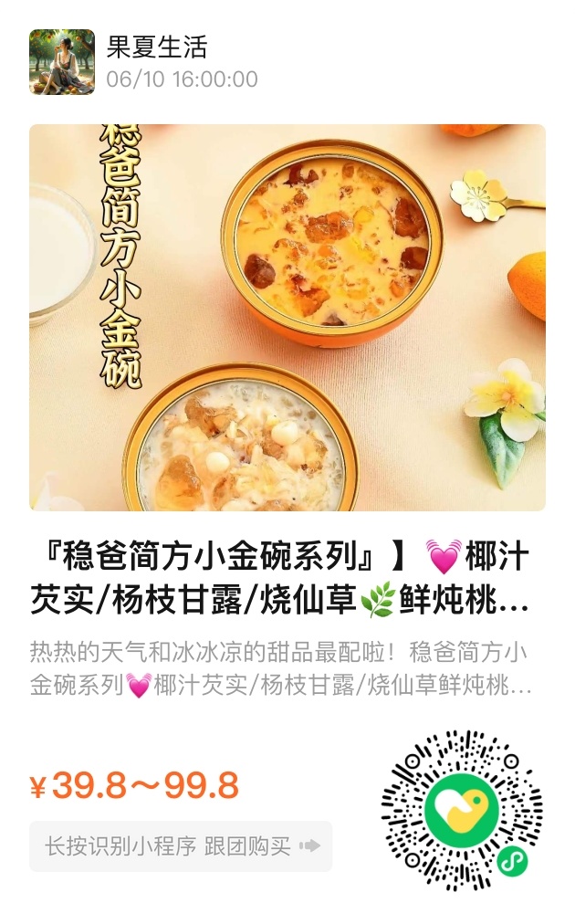 有些甜品,不光是嘴巴的享受,更是心里的慰藉。很多朋友说,忙碌一天,打开一碗稳爸的小金碗,看到那满满的桃胶和银耳,就觉得这一天过得不那么辛苦了。特别是椰汁芡实、杨枝甘露、烧仙草这三款,味道刚刚好,不甜腻,吃完还有种“被照顾了”的感觉。