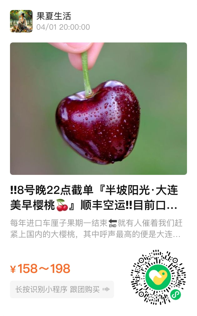 樱桃是夏天的味道,而大连美早樱桃,无疑是这一季最值得期待的味觉盛宴。每年的这个时候,大家的心中都会响起对樱桃的期待声,特别是美早樱桃。这不,今年的美早又来了!它不像进口车厘子那样远渡重洋,而是从大连的半坡阳光果园,经过细致的栽培和挑选,带着初夏的温暖,悄然抵达你我手中。这个果园位于得利寺地区,海边坡地的特殊气候让樱桃在阳光下悄然变得更甜,风味更加浓郁。没有任何催熟,没有任何保鲜剂,只有最自然的阳光和土壤,让每一颗樱桃都带着大自然的馈赠。
