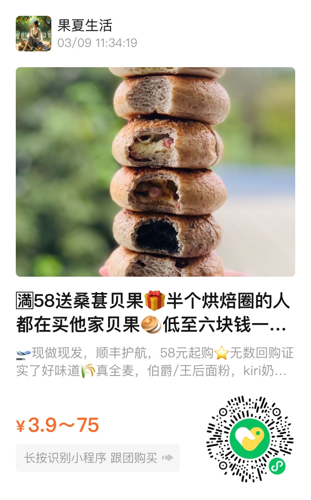 而这些认真做出来的面包,如今不用在城市里排队抢购,不用去高价网红店里破防钱包。在这个宝藏烘焙店,满🈵58还送桑葚贝果一个,价低质高,堪称“烘焙界的白月光”。贝果、碱水包、肉桂卷、软欧包、恰巴塔……都能混搭,统统都可以享受多买多送的福利。新出的艾草豆沙贝果,是春天的限定;黑芝麻、黄金南瓜、柠檬乳酪款款不甜腻,吃得健康又安心。
