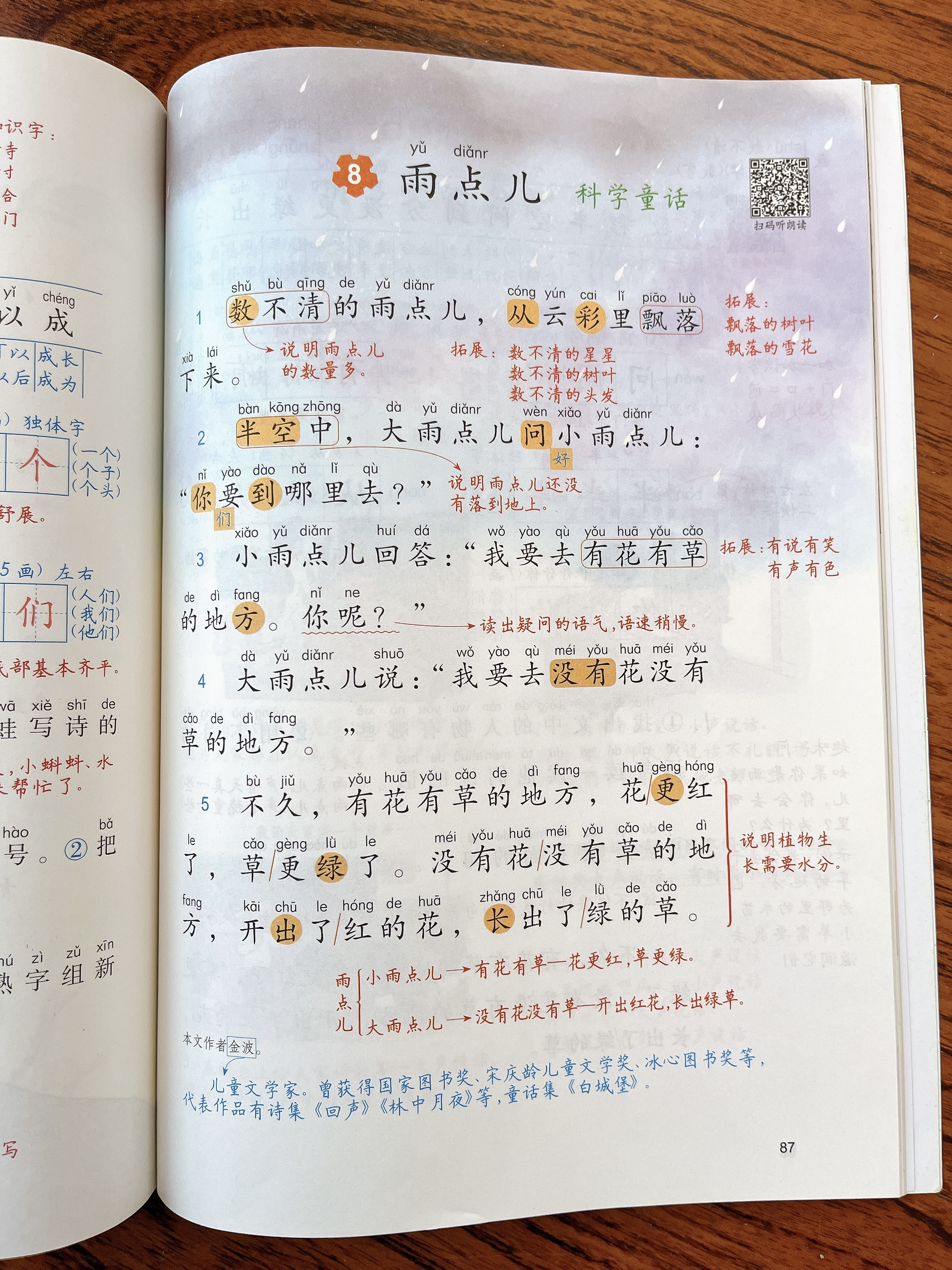 在细节的把控上,《涂重点》更是无微不至。科学的版式设计、大字号的文字、清晰的行距,甚至连笔记空间的预留,都是为了让孩子们能够更好地做笔记,增强学习的效率。而每一篇课文的批注,都有书法大家张胜华的亲笔原稿,字字如画,线条优雅,潜移默化中,不仅教会孩子们知识,更教会他们如何优雅地书写。学习不再是单纯的知识积累,而是一场美学与智慧的双重享受。