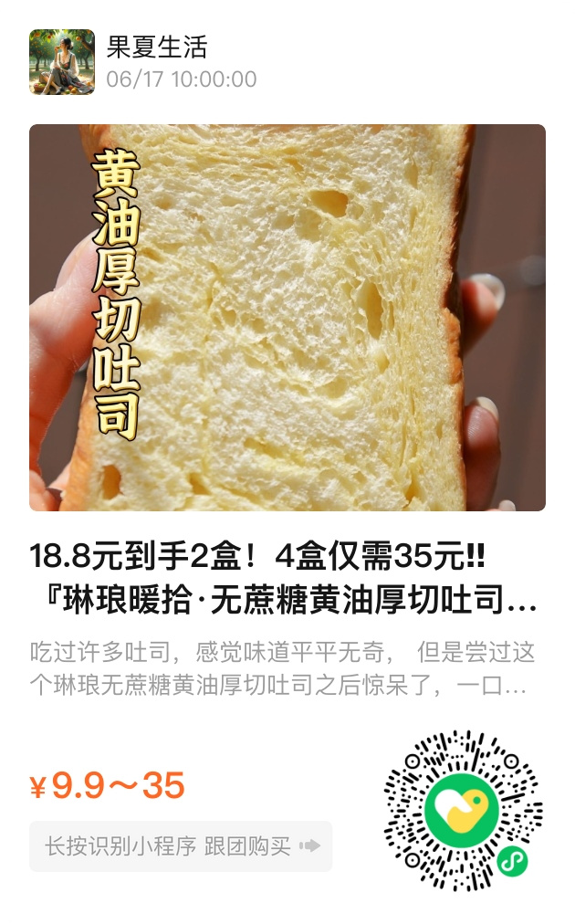 现在,琳琅暖拾·无蔗糖黄油厚切吐司正在进行限量促销,9.9元即可购买到一盒,限量1万份,名额有限,抢到就是赚到。无论是早餐、下午茶,还是和家人一起分享,它都是一种温暖的选择。快来为自己和家人准备一份美好的早晨,生活,从一片好吐司开始。