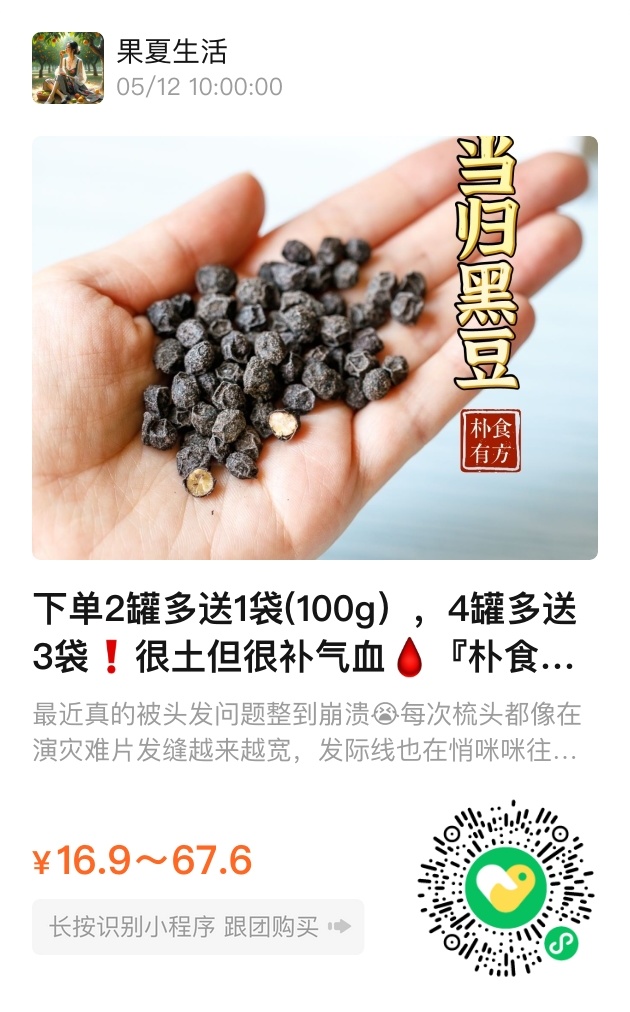 小时候,奶奶常说:“头发好不好,不是洗出来的,是养出来的。”那时候不懂事,总觉得这话老气横秋。直到有一天,站在镜子前看见发缝渐宽、气色蜡黄,才发现,原来头发、脸色这些外在的小毛病,背后藏着身体的信号——气血亏了。这款「朴食有方·当归黑豆」,就像一位懂你的老中医,不打扰、不张扬,却在不经意间,把你体内的寒湿与疲惫,一点点拎出来晒太阳。