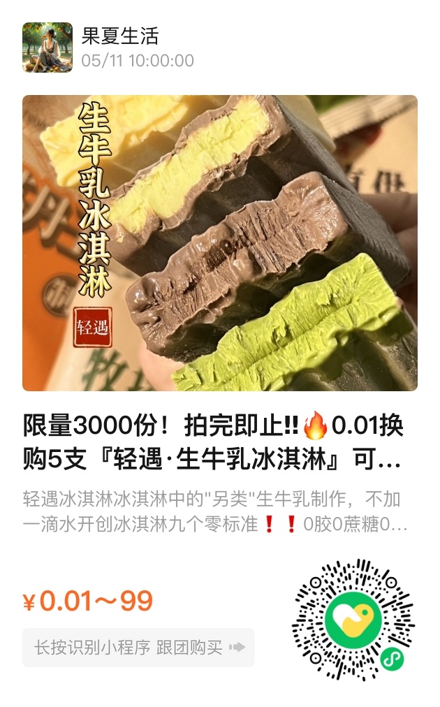 我想,这份纯粹的滋味,不仅是孩子们的喜爱,更是我们大人心底的向往。没有什么比亲手递给孩子一根既美味又健康的冰淇淋更能让人安心的了。而在这个夏天,轻遇冰淇淋不仅仅是一个甜品,它代表的是一种对食物、对生活的态度——让每一口都充满爱与智慧。限量3000份,错过了就没有了,快来体验吧!
