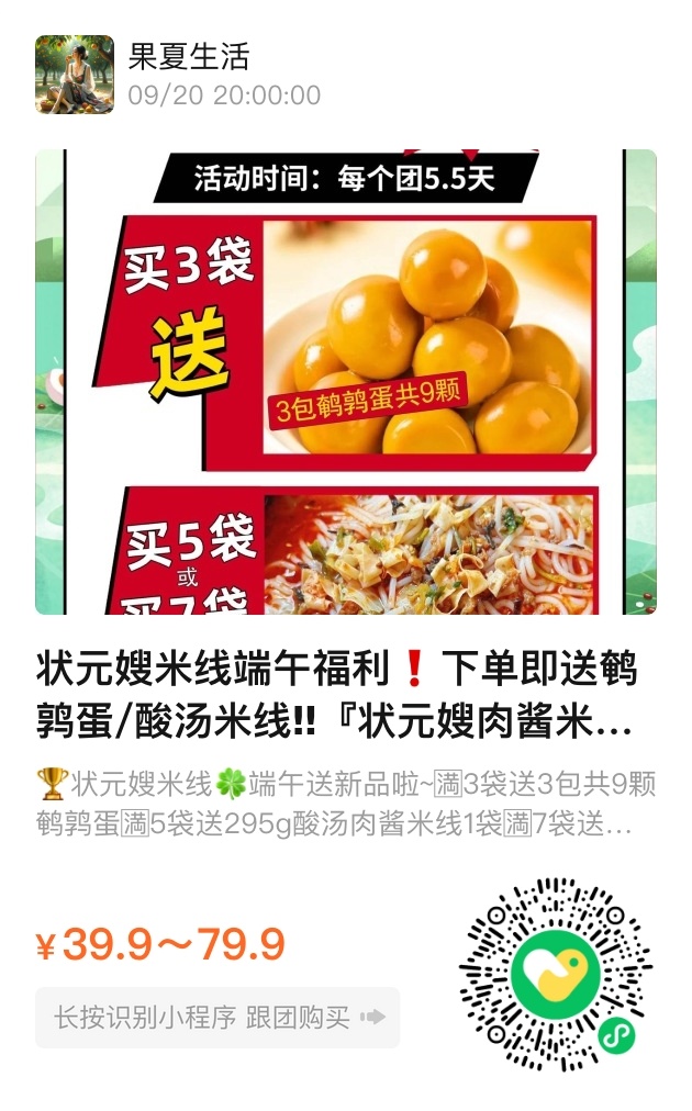这米线是用纯粮纯水做的,不加防腐剂、不靠色素撑门面,真材实料不说狠话。是创始人一趟趟回徐州跑出来的味道,也是工厂里一丝不苟做出来的良心货。这个端午,只要下单就送新品——买3袋送3包鹌鹑蛋,5袋送1袋酸汤米线,7袋也是送酸汤米线,活动截止到18号中午12点。