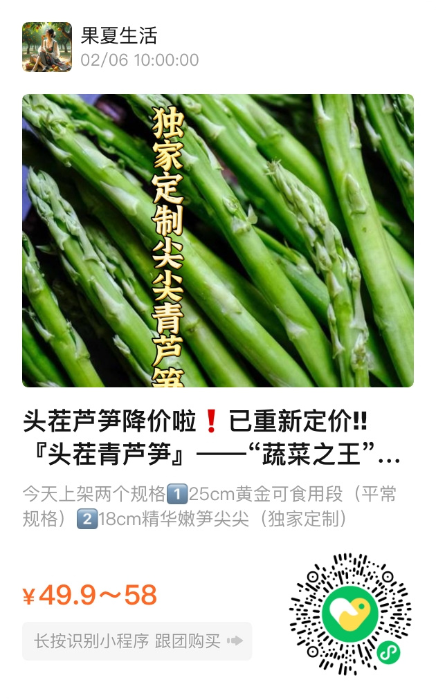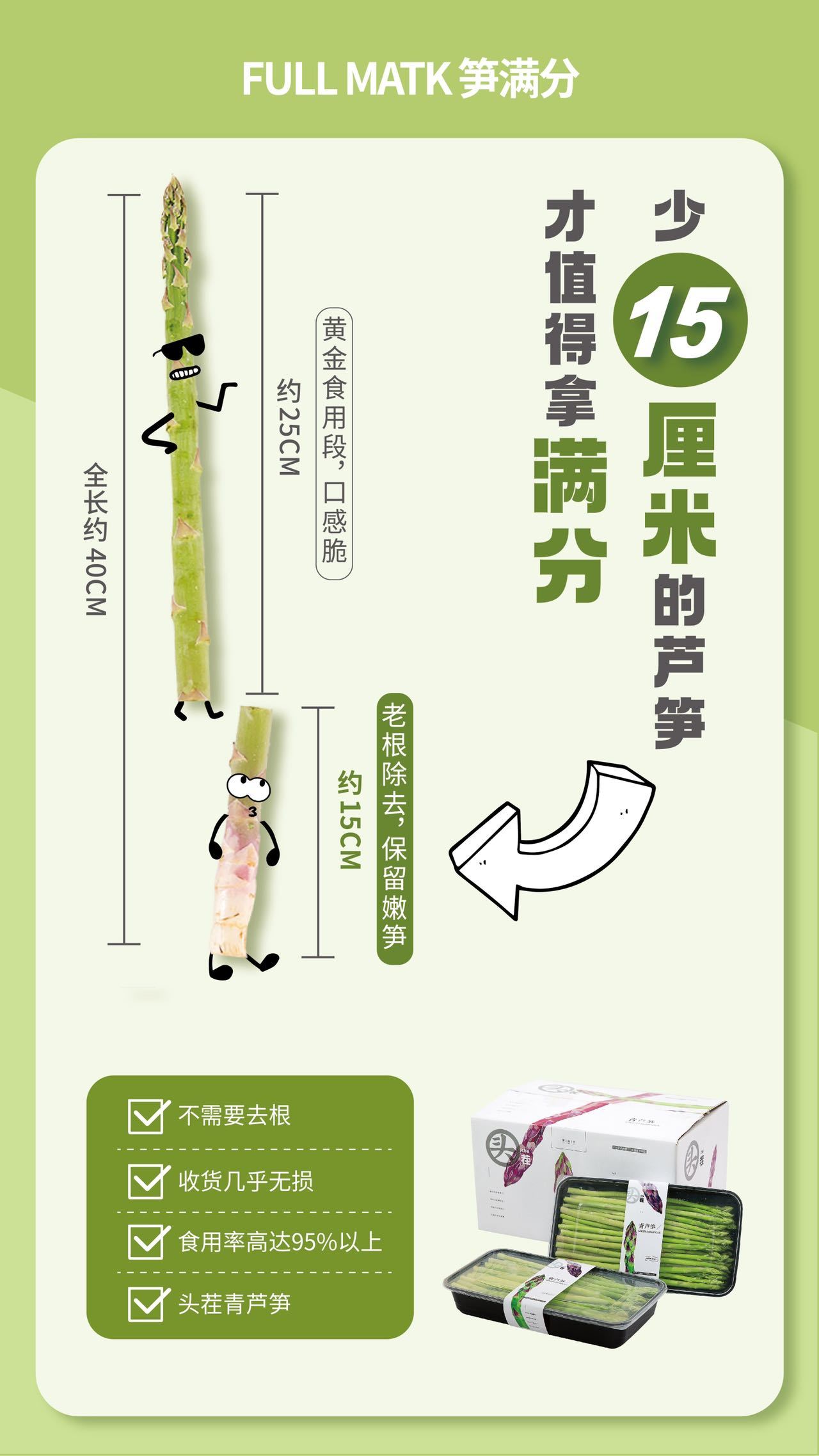 为了让您能更好地体验这一切美味,我们特别推出了本次活动。现在购买我们的“笋满分”头茬青芦笋,不仅价格更加优惠,还能享受我们的专属服务。无论您是想尝试经典的素炒芦笋,还是创新的虾仁芦笋,或者其他各式创意食谱,芦笋都将成为您餐桌上不可缺少的主角。活动期间,我们特别提供两种规格:25cm黄金可食段和18cm精华嫩笋尖,满足您不同的需求。快来体验,让健康与美味相伴!