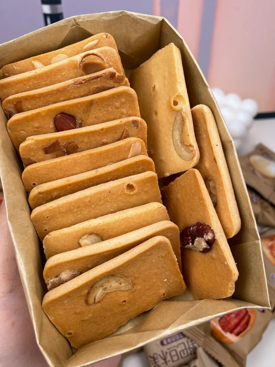 许多人对这款坚果芙的评价都十分高,尤其是它那独特的酥脆口感和丰富的坚果香气,让每一口都充满惊喜。它的蛋香和坚果的层次感让人一试成主顾,吃上一片,便不自觉地又想再来一片。而且,它的配方特别适合全家人食用,老人、孩子都能享受这份健康与美味。对于忙碌的你,它也是一种快速的充饥良品,一袋独立包装,随时随地都能享用。