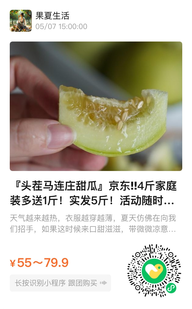在这个季节,若要选一种方式安抚浮躁,那就是咬一口马连庄甜瓜。脆、甜、香三重奏在舌尖奏响,连着心情都变得柔软了。现在京东活动,4斤家庭装多送1斤,实发5斤,错过可就真要等来年了。