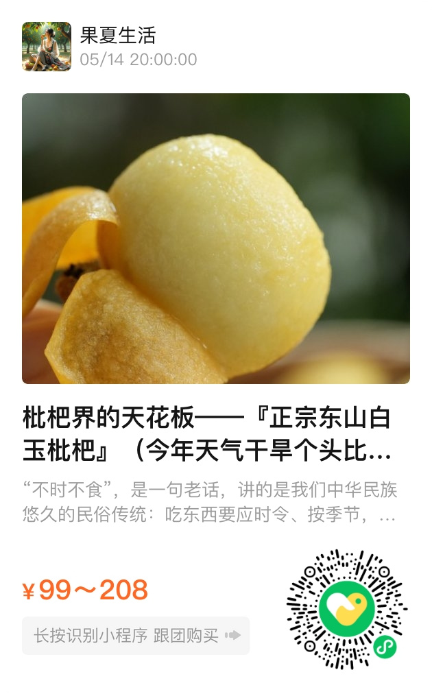 正因如此,东山白玉枇杷成为了“枇杷界的天花板”。它的甜美不仅仅停留在味蕾的瞬间,更引发你对生活的感悟与热爱。它的外形小巧可爱,皮薄肉厚,汁水丰富,不管是品味它的滋味,还是剥开它的皮,都会让你在平凡中发现不平凡的美好。每一口的清甜,仿佛在提醒我们:生活的美好,往往藏在不经意的瞬间,而这种美好,也正是因为“时令”的把握与自然的馈赠,才显得格外珍贵。