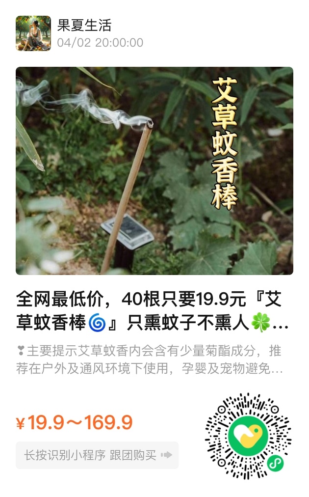 为了让你在这个夏季不再被蚊虫叮扰,特推出超值活动:艾草蚊香棒,40根只需19.9元,选择45厘米或60厘米长,满足不同需求。无论是家庭使用,还是户外露营,艾草蚊香棒都是你不可或缺的伴侣。快来体验这份天然的守护,给自己的生活增添一份宁静与清新。