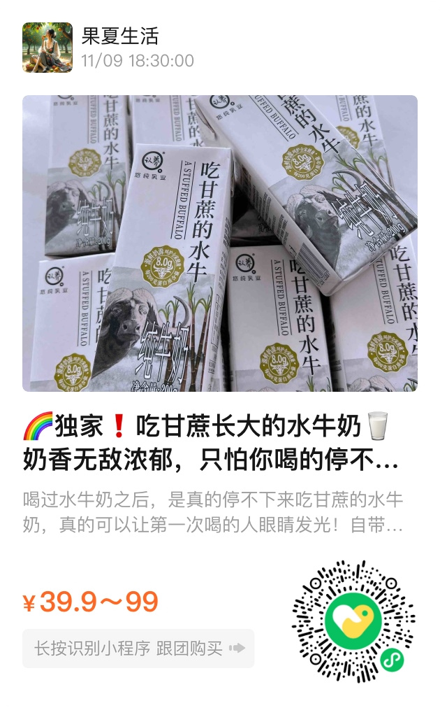 为了让你在繁忙的生活中也能感受到一份宁静与美好,我们为你准备了特别的囤货装——三箱30盒水牛奶,只需99元!每一盒水牛奶都承载着牧场的阳光与甘蔗的甜美,喝上一口,仿佛置身于那片辽阔的牧场。此次活动限时特惠,数量有限,错过不再!