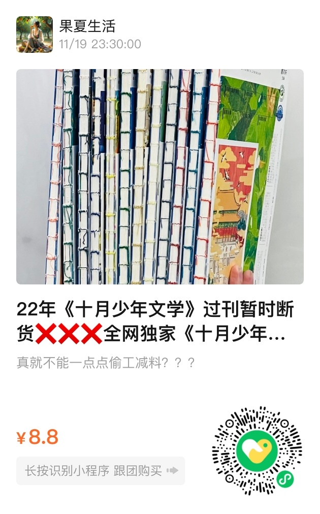 在这个浮躁的世界里,《十月少年文学》是一份难得的珍贵礼物。它用文字和画面将孩子们带入了一个美丽而广阔的世界。在阅读中,他们不只是看故事,更是在与世界对话。每一篇文学作品,都像是一颗璀璨的星星,照亮他们前行的路。而这本杂志的过刊,正是时间给予的馈赠,它让我们在过往的文字中找到了属于我们的智慧和灵感。