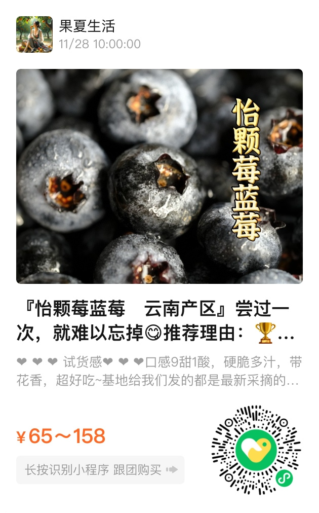 活动时间有限,现正举行团购活动,价格实惠,送货上门,让你随时随地享受到新鲜的蓝莓。别错过!