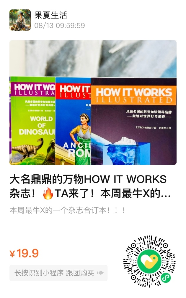 此次团购活动为大家带来了前所未有的优惠。每本合订本仅需19.9元,相比市场价格50元,您将以更实惠的价格获取这本世界级的科普书籍。但请注意,这个活动仅持续1-2天,错过了就要涨价,甚至可能会提前下架。名额有限,赶紧抓住机会,让孩子们在暑假里,边读边学,收获满满的科学知识吧!