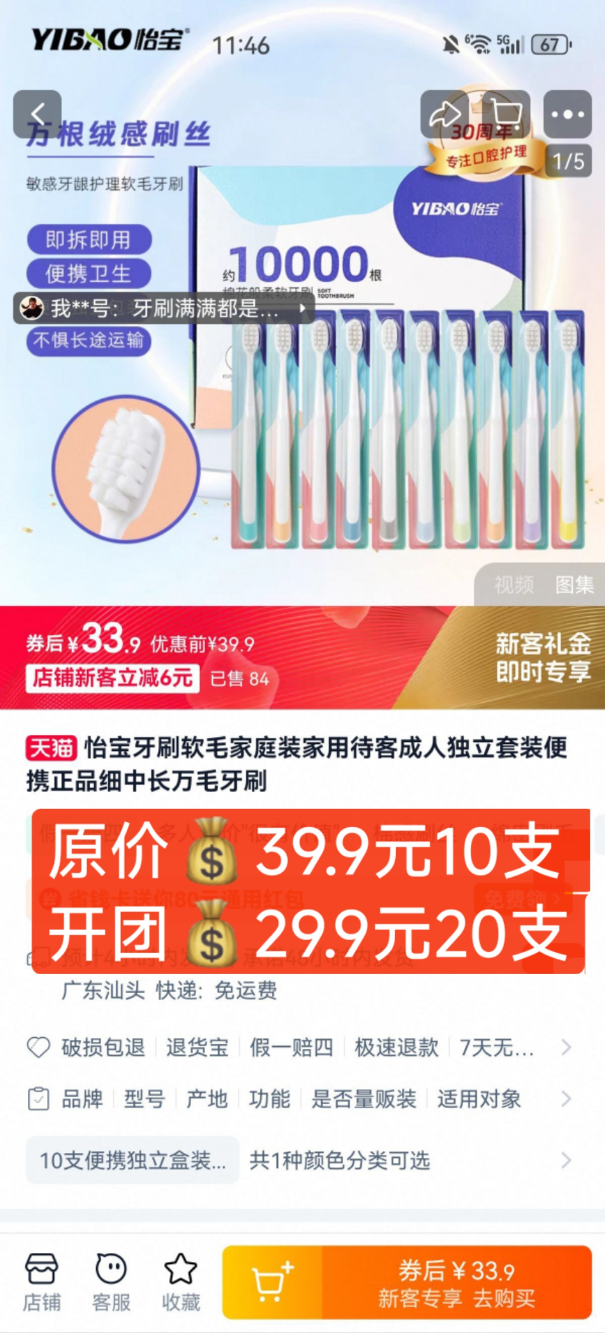 活动时间有限,29.9元即可带走2盒共20支怡宝牙刷,每支仅1块多。一个月一支,一整年都安心。