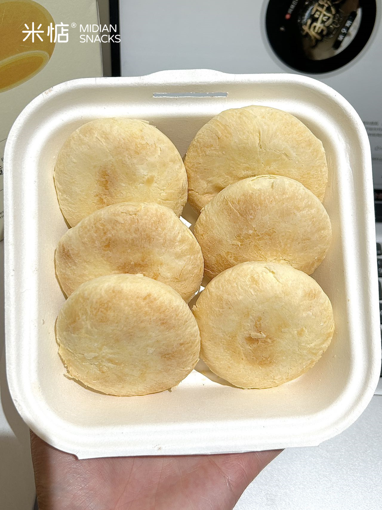 黄油奶酥太阳饼的魅力,源于它在传统的基础上所做的创新。精选新西兰安佳黄油与恒天然乳粉,奶香浓郁却不腻口,不添加任何香精和防腐剂,保证了每一口的纯净和美味。手工揉面的开酥工艺,更是将酥皮做到了极致,每一层都轻盈松脆,咬上一口,能感受到那种酥软与奶香的双重冲击。细细品味,软糯的内馅中奶香四溢,口感绵密,带着一丝清甜,仿佛回到了童年时光中那份简单而纯粹的美好。