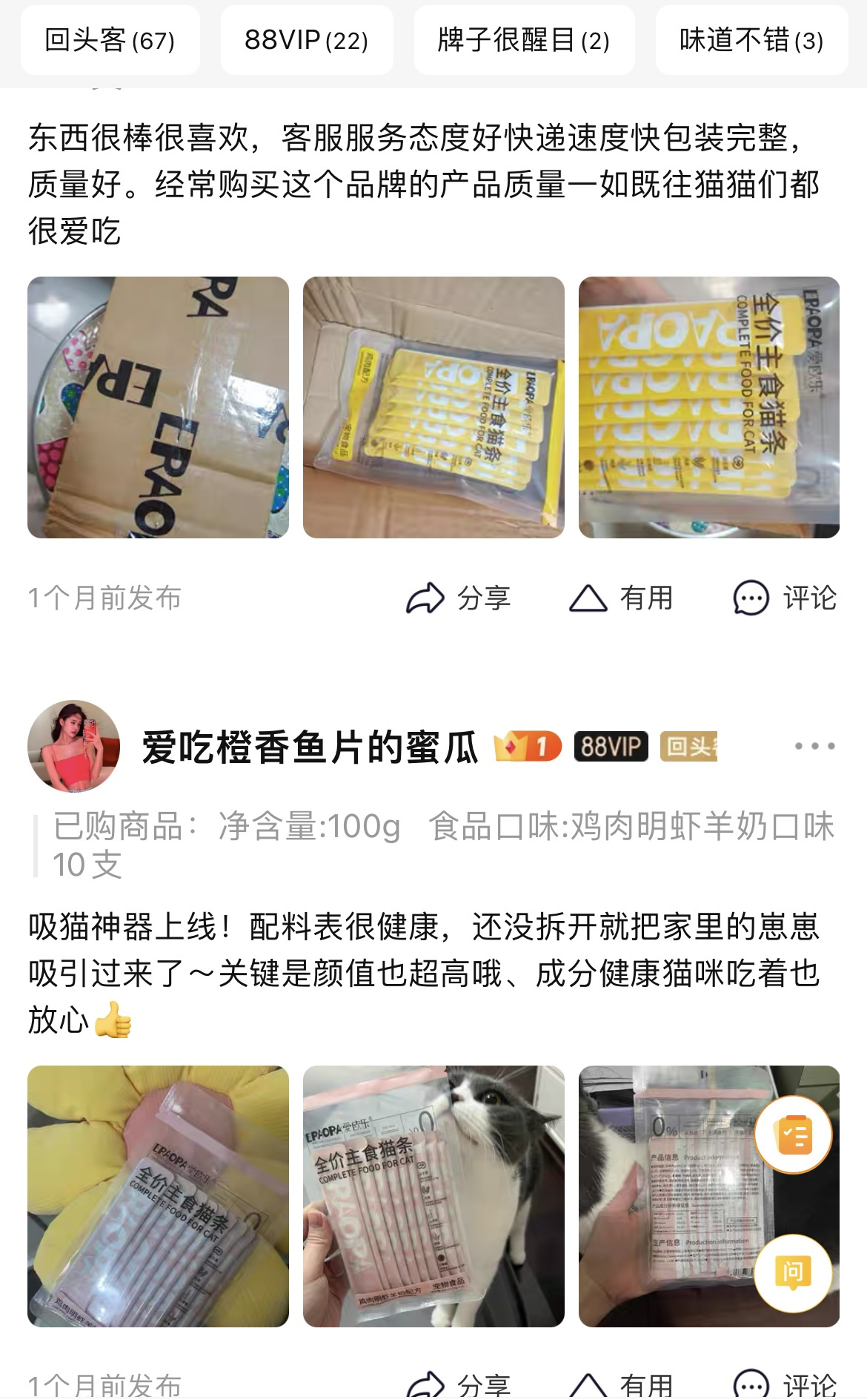 不仅是普京同志,其他几位试吃员也都一致表示,爱欧乐猫条的美味让它们一口接一口。毛豆同志虽平时挑食,但一试这款猫条,居然也忍不住停下脚步,吃得津津有味。无论是鸡肉、三文鱼,还是鸡肉鲜虾羊奶口味,每一款都有着独特的魅力,细腻的肉质、丰富的口感,完全符合猫咪的天性。特别是添加了益生菌的配方,调理肠道,增强消化,毛孩子的肠胃再也不受负担,吃得健康又快乐。