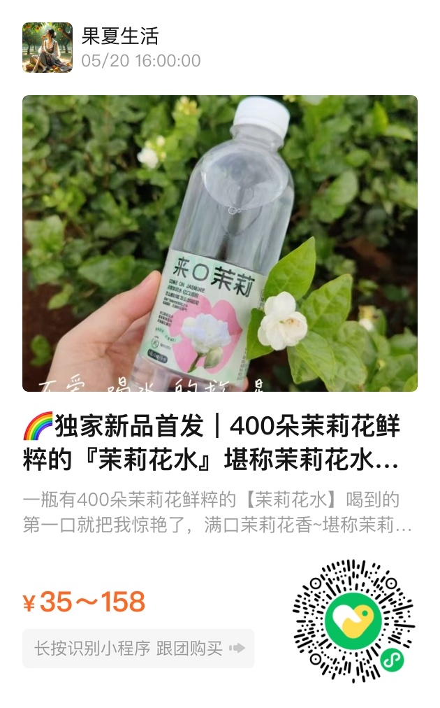 正如古人所说,“食色性也”,生活的美好往往藏在那些看似不起眼的细节中。『来口茉莉』就是这样的存在,它没有过多的修饰和张扬,却以其纯净、自然的味道打动了每一位品尝者。不论是作为每日的饮品,还是作为烹饪调味的秘密武器,它都能在你生活的点滴中,散发出与众不同的光彩。没有糖的负担,没有香精的杂质,只有茉莉花本身的清香与甘甜,就这样悄然走进了你的生活,带来一份宁静与治愈。