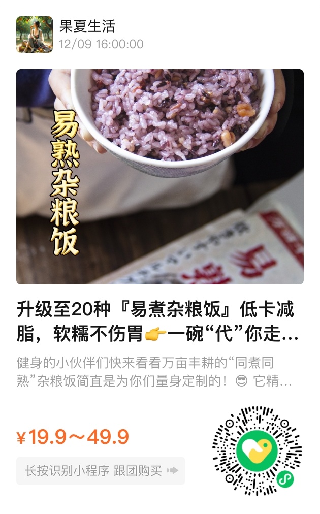 现在,只需点击购买,就能享受优惠活动!购买我们的家庭装杂粮饭,不仅有折扣,还有专属礼品相送。抓住机会,给自己和家人带来健康美味的选择!