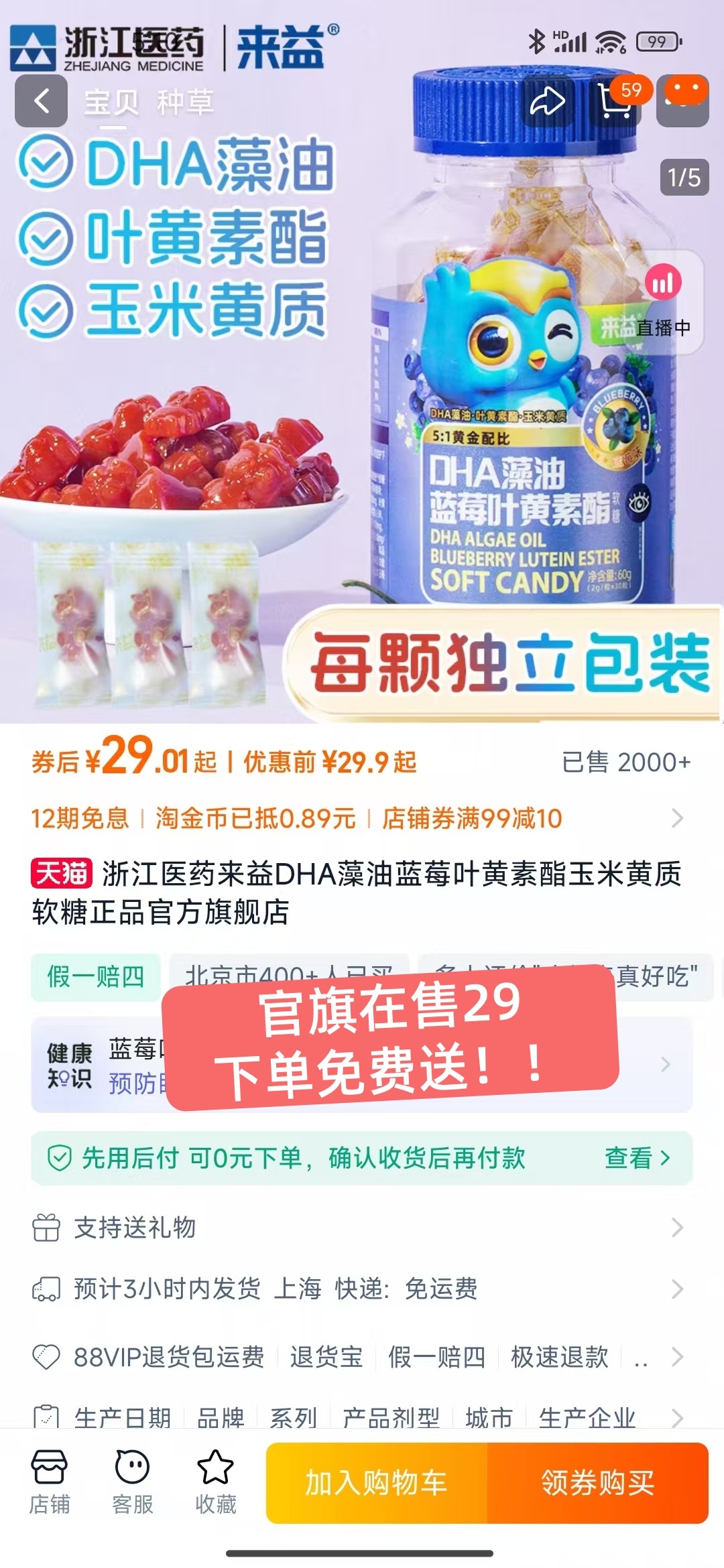 胖东来精选上架,【来益叶黄素咀嚼片】开启护眼高端局。现在游学专场活动超划算:买1赠2,3瓶到手只要79元,附赠价值近60元的γ-氨基丁酸水解蛋黄粉软糖+DHA藻油蓝莓叶黄素酯软糖;或买2瓶99元加送蓝莓叶黄素糖果;更有买3送1,169元还送维生素C含片。
