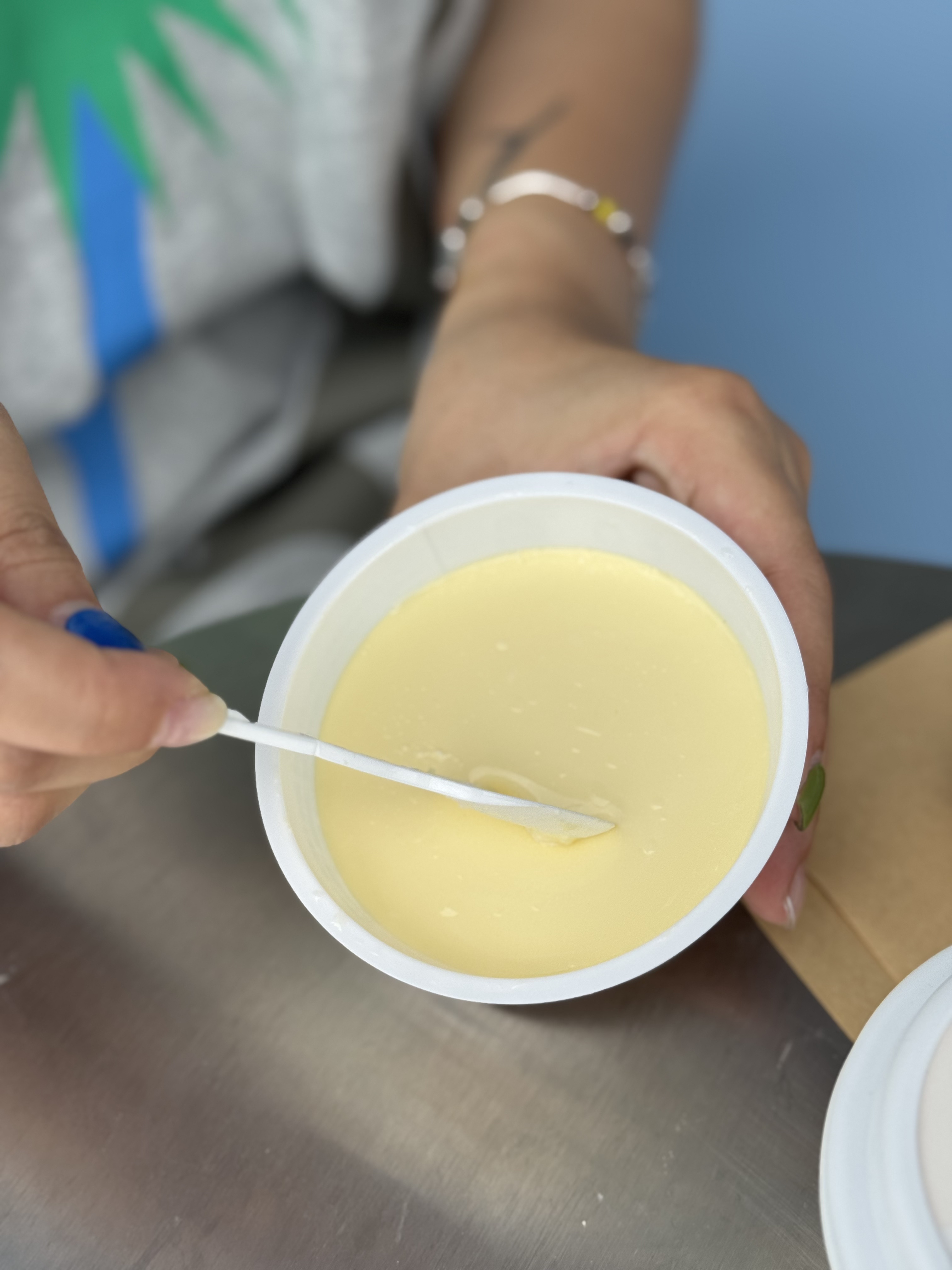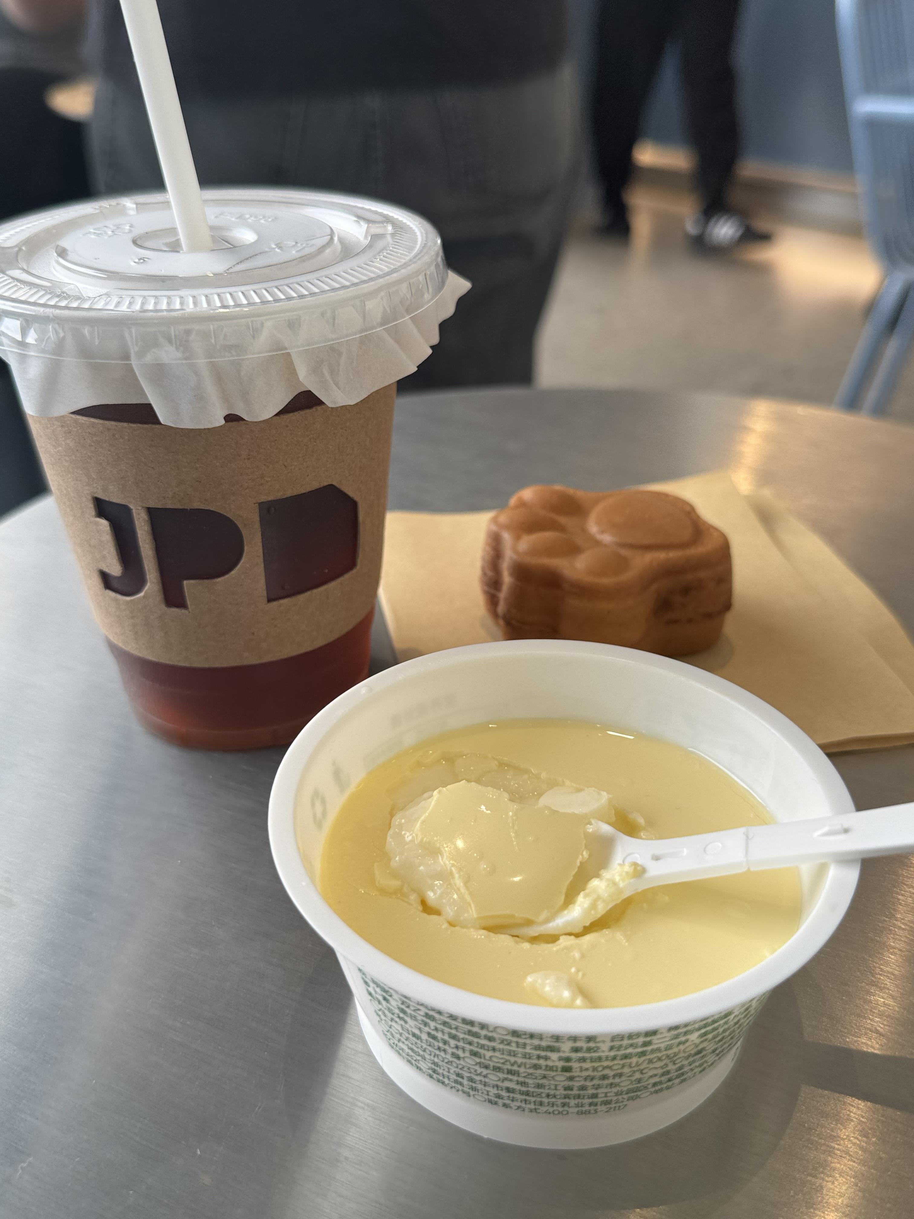 这杯布丁的厉害之处,在于它不靠香精作假,靠的是老实厚道的食材:≥80%的生牛乳,自家牧场出品,鸡蛋、奶油、芝士一个都没少。牛是金华九峰山脚下养的,听音乐、喝山泉,日子比我们还舒坦。所以它们产的奶,自然也带着种岁月静好的味道。布丁软得像被风轻轻吹过,蛋香、奶香轮流在嘴里打转,像读古诗时碰到押韵的句子,不惊艳,但动人。
