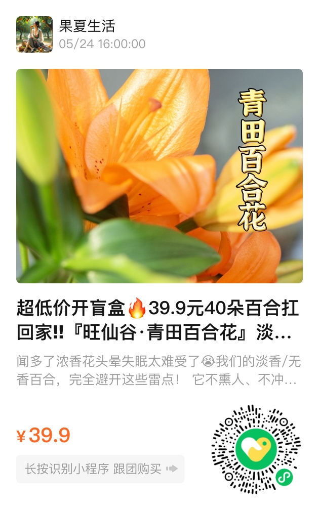 现时活动火热进行中,39.9元即可获得8枝百合,每枝保证40个花苞,品种颜色随机,惊喜不断!趁现在下单,收获满满的浪漫和祝福。