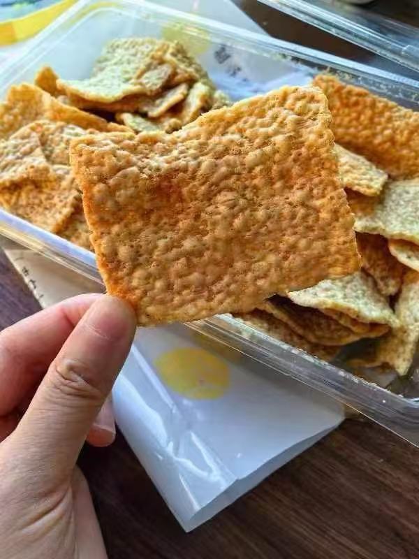在零食与健康的拉锯战中,它成了两全其美的“叛徒”。蟹黄香是海风的调皮,苦荞味是山峦的沉稳,0反式脂肪的配方连减脂期都敢理直气壮地解馋。办公室里拆一包,同事循香而来,倒像极了童年酒席上抢锅巴的光景——原来高级的烟火气,从来不必以健康为代价。五星级酒店厨师的调味秘诀,不过是尊重食材的本真:高原苦荞的香、非遗匠人的诚、阳光雨露的甜,都在这一片金黄里坦诚相见。
